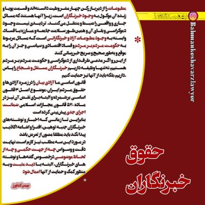 بنابراین تا زمانی که اخبار و نوشتههای خبرنگاران جنبه توهین، افترا و اشاعه اکاذیب پیدا نکند باید مطلقا مصون از تعرض باشد.
